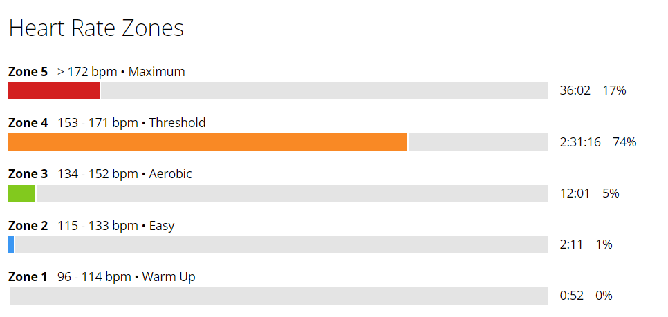 On that note too I badly screwed up my nutrition and hydration for this longer race. I have gained more weight than I wanted in the last 6 weeks so I had been trying to avoid snacking as the week came to a close and didn’t do any extra eating in preparation for the race. I think all I had between lunch Friday and the race on Saturday morning was an egg with some cheese and sandwich meat, a slice of bread, and some pudding. I was running on an empty stomach basically. If you’re going to stay in the lower heart rate zones that might not be the worst as your body is looking to fat reserves for fuel in those zones but as you get into zone 4 and 5 it wants glycogen carbohydrates to burn. This is why marathon runners are known to carbo load in the days before a race. Spending three hours out there means I probably would have benefited from taking in some calories during the race as well.