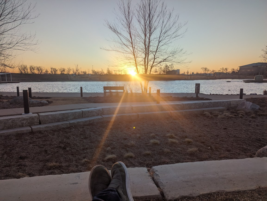 Sunrise – This may be the most important thing I can schedule. I like to pick one day a week to spend outside at sunrise taking it all in. The way the sky changes from 30 minutes before sunrise to 30 minutes after is pretty remarkable. I enjoy just sitting there thinking about my life or walking as well. These times are great both out in nature or in city settings. This week I sat down by the Lake in Heartland of America Park, perhaps a bit chilly but a good time of reflection.